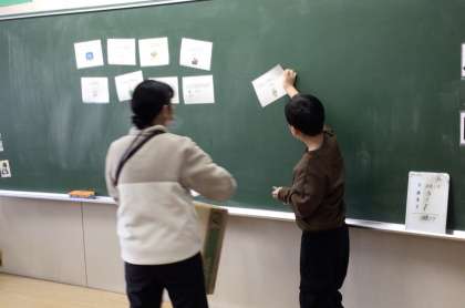 山あす一階チームで外国語活動を行いました。季節や冬休みのイベントであるクリスマスやお正月に関する単語を使ってビンゴを行い、楽しい思い出を振り返りながら「rice cake」や「new years day」などの単語を覚えました。
