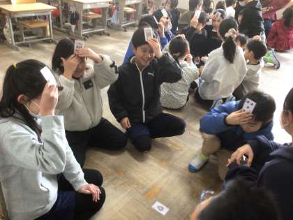 今日の縦割り活動は、5年生が初めて計画した遊びを行いました。5年生は、どの子も楽しめるような遊びにしたいと一生懸命準備をしてきました。参加した子どもたちは、とっても楽しそう。どのグループからも大きな笑い声が聞こえてきました。でも教室に戻ってきた5年生からは「うまくできなかったところがあったよ」「6年生はすごいなぁ。ぼくたちも来年は6年生みたいに上手にやらなきゃいけないよね」などと自分たちの活動を謙虚に振り返る言葉が聞かれました。目標を高くもって活動する5年生は素敵ですね。