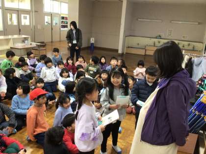 最初はいつもの学年集会でしたが、子どもたちから「ちょっと待った〜」との声がかかり、お別れ会に早変わり。子どもたちからメッセージカードが送られると先生はとて嬉しそうでした。お家で穴が開くくらいしっかり読んでくれるそうです。お別れは寂しいけれど、元気な赤ちゃんの誕生が楽しみです。