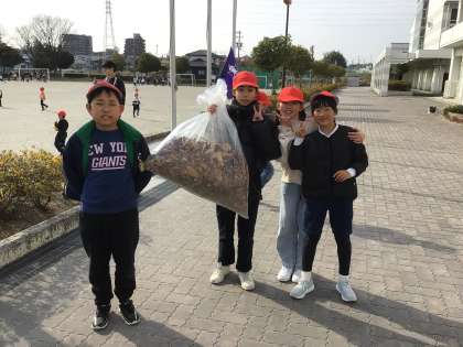 綺麗な学校にしようと、休み時間に校庭の掃除をしている5年生がいました。