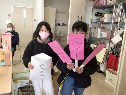 子どもたちは、椅子に座ったまま楽しめる輪投げや、当たりが出ると手作りの折り紙プレゼントがもらえるくじ引き、ジェスチャーゲームなど、お年寄りの方々が一緒に参加しやすい内容やルールを工夫しており、笑顔でゲームを楽しんでいただくことができました。最後には、別れを惜しんで涙を流してくださる方もおり、子どもたちと握手を交わしながら名残を惜しむ温かい場面もありました。