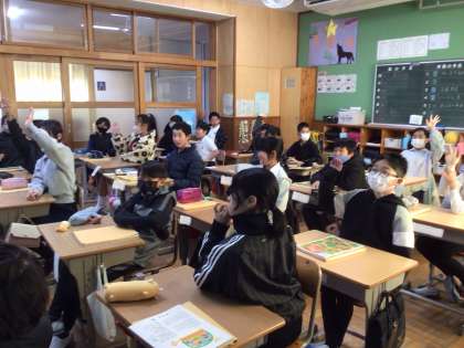 5年生の家庭科で金融教育の出前授業がありました。J-FLEC(金融経済教育推進機構)から、フィナンシャルプランナーの資格を持った講師の方に来ていただき、貯蓄や株式、保険などの仕組みを学習しました。これまでは、限りあるお金をどう使うとよいのかを中心に学習してきましたが、これからの時代を生きていく子どもたちにはお金を貯めたり増やしたりする力もつけていく必要があります。お話を聞いたり、クイズに答えたりしながら金融商品の仕組みを知り、子どもたちは「自分たちが経済を回していくんだ」という当事者意識がもてたようです。ぜひ、ご家庭でも話題にしてみてください。