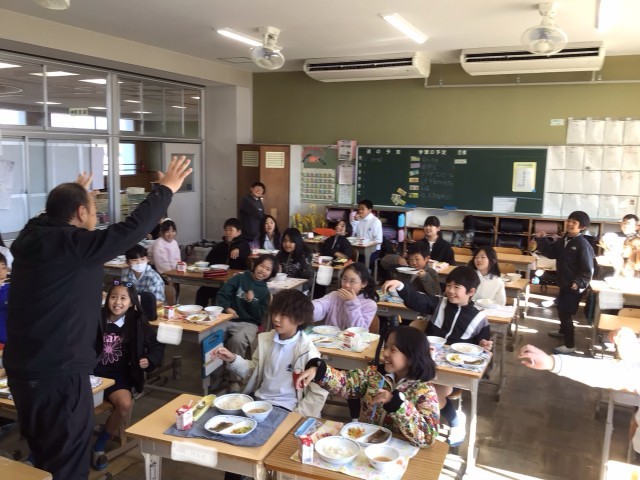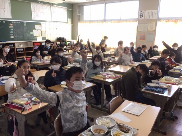 今日の給食は節分献立。イワシの蒲焼丼、節分豆、菜花のおひたし、つくね汁が出ました。4年生では、担任の先生を鬼に見立てて、楽しんでいるクラスもありました。でも「豆がもったいない!」と言って、実際には投げないで一粒ずつ豆を丁寧に食べていて、子どもたちのモラルの高さに感心させられました。
