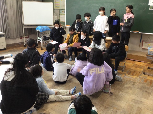 最初に5年生が6年生を迎えに行きました。6年生の教室に入るのは緊張したようですが、丁寧な言葉遣いでしっかりと伝えることができました。その間、各教室では下級生が6年生の到着を今か今かと待っていましたが、5年生が急遽じゃんけん大会をして待つようにするなど、下級生が飽きない工夫をしていました。