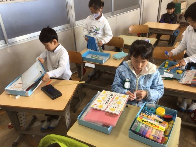2年生では、めあてを意識して、定期的にお道具箱や机の中の整理整頓をおこなっています。「いつも整頓しているから、きれいだよ」と涼しい顔をしている子もいれば、「今からきれいにするよ!」と慌てている子もいましたが、整理整頓が終わるとみんなにっこり笑顔になっていました。
