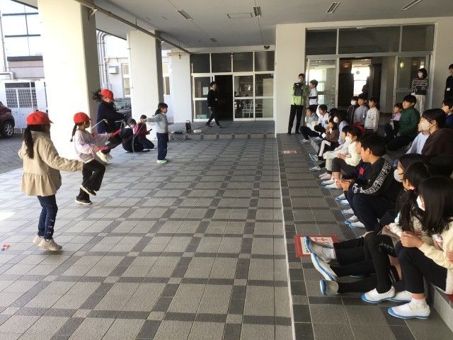 今日のわらべちゃんでは、1年生「スマイルハロハロ」チームの縄跳び発表がありました。前とびだけでなく、片足とびや交差とびなど、いろいろな種類の跳び方で跳んでいました。4人の女の子たちが音楽に合わせてリズミカルに跳ぶと、自然と手拍子がわきました。見ている子たちも「私もなわとびをやりたくなってきちゃった!」と話していました。4人は12月から練習をしていたそうです。たくさん練習したのですね。仲間を増やして、練習を続けてくださいね。
