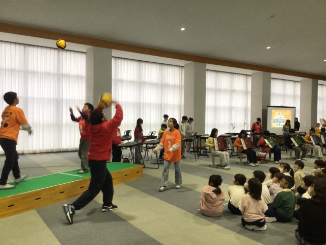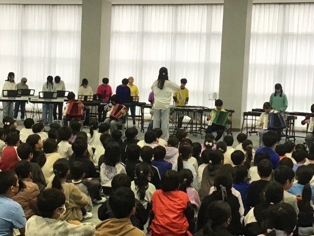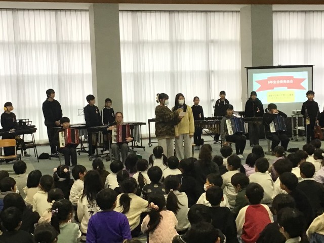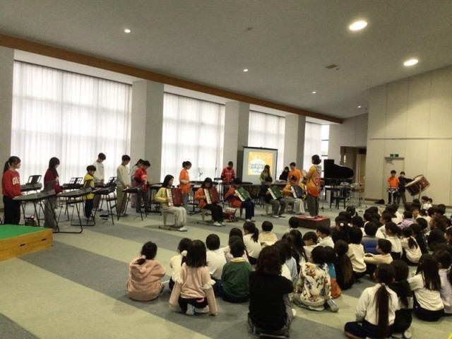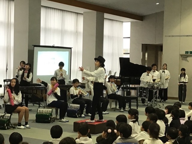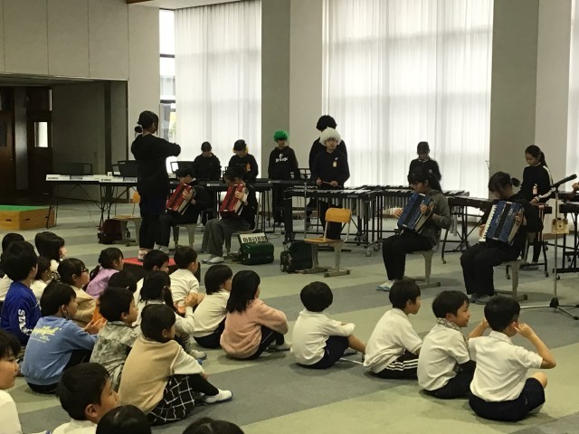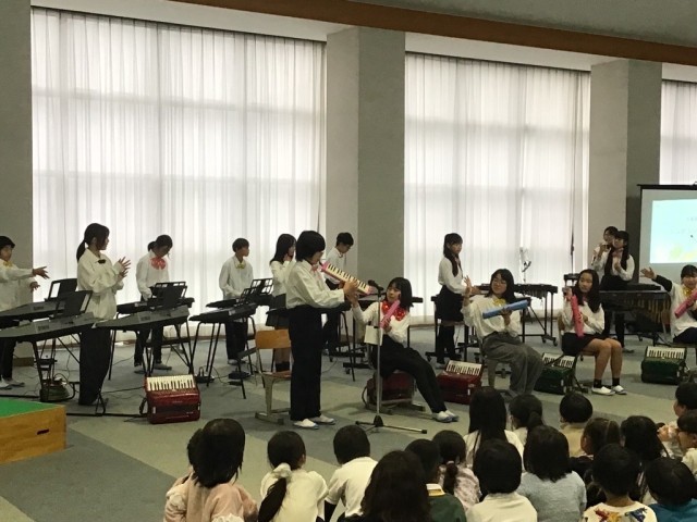 6年生が1〜3年生を対象に「わらべちゃん」で合奏を披露しました。