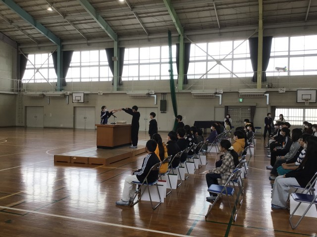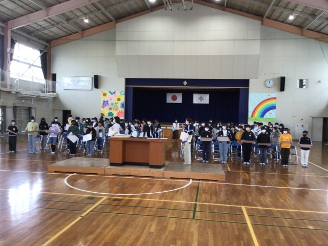 卒業式の体育館練習が始まりました。6年生は、卒業式の意義を先生から聞いて気合いを入れ、証書の受け取り方を中心に練習しました。他にも、礼の仕方や座った時の姿勢など、主役にふさわしい姿になるように練習をしていました。卒業式当日、最高の姿が見せられるよう頑張ってほしいです。