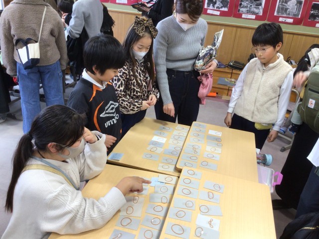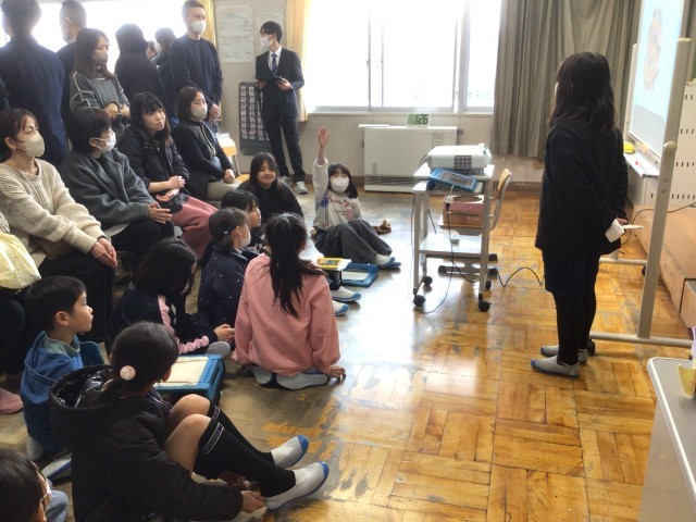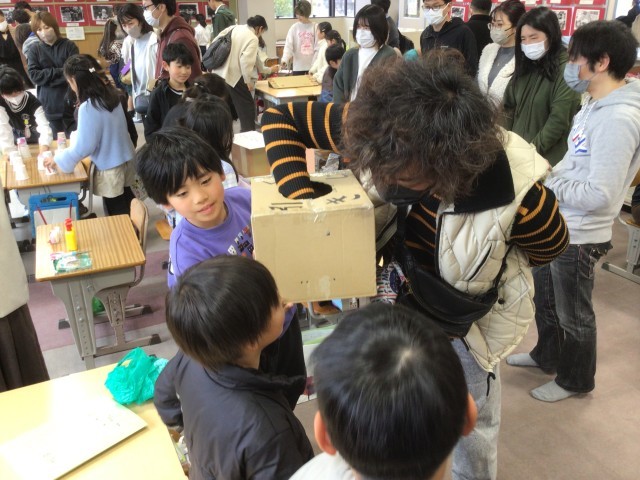 5時間目に3年生の学習発表会があり、福祉について探究してきたことをグループごとに発表しました。子どもたちは、高齢者疑似体験や地域の介護施設での経験から、「誰もが幸せに生きる町」をテーマに考えを深めてきました。「出会った人と仲良くなって、相手のことや接し方をよく知りたい」「この町にはいろいろな人が暮らしているから、その人に合ったサポートが必要だと気づいた」などと、それぞれの思いを伝えていました。その後、保護者の方にも自分たちが作ったおもちゃで遊んでいただき、子どもたちの工夫を体験していただきました。お家の方と子どもたちで楽しい時間を共有でき、笑顔があふれていました。お家の方々には、これまで、おもちゃの材料集めなど、たくさん応援してくださり、ありがとうございました。
