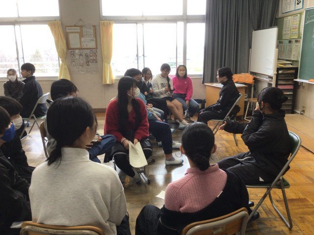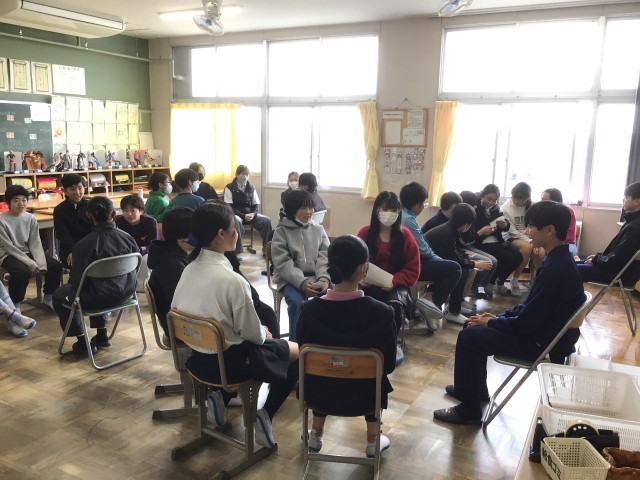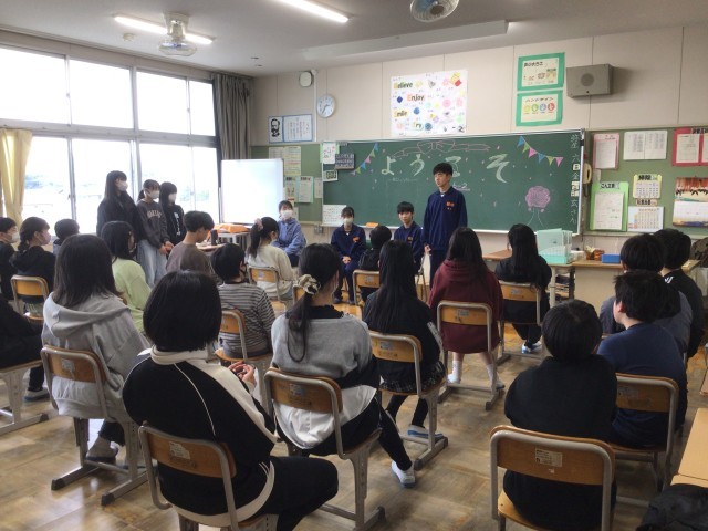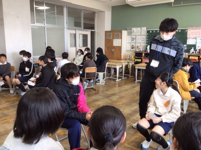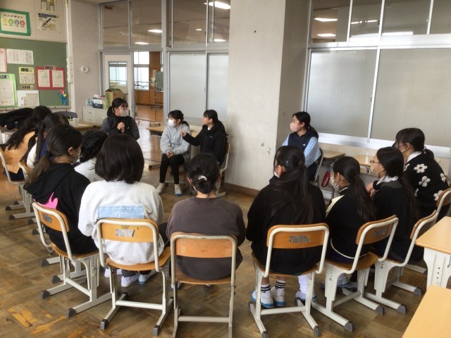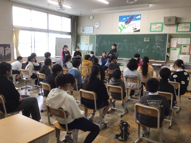 今日は、朝日丘中学校の1年生22名に来てもらい、6年生に中学校生活の話をしてもらいました。