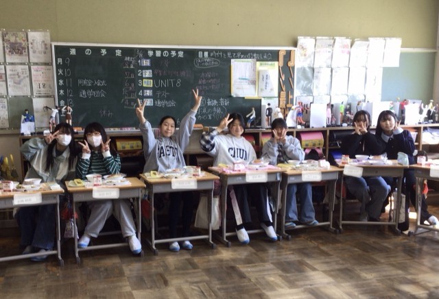 給食中の話題は、担任の先生の未来。幸せになってほしい、という子どもたちの願いがひしひしと伝わってくる温かい内容でした。教室中で笑顔がたくさん見られ、楽しい会食になりました。