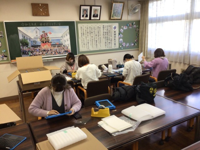 4月から子どもたちがすぐに使えるように、数日かけて、500台以上の学習用タブレットに画面保護シートを貼ってくださいました。丁寧に作業してくださり、本当にありがとうございました。4月から大切に使わせていただきます。