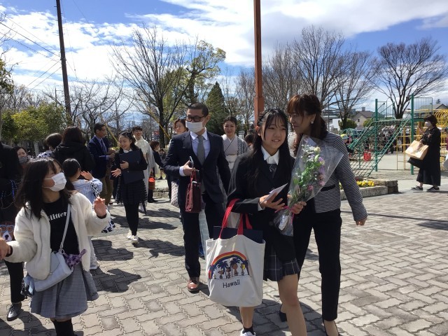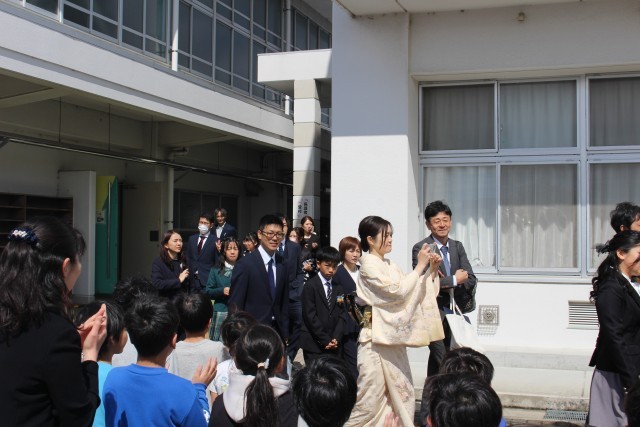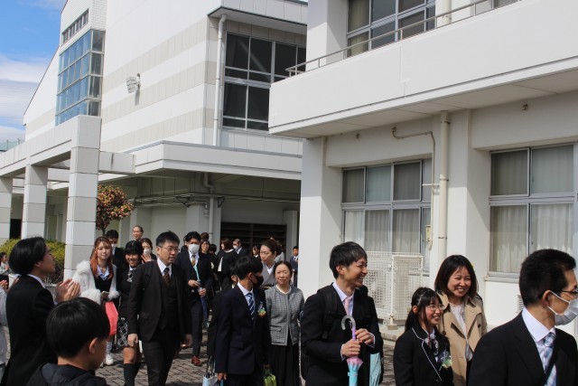 外に出ると、朝から降っていた雨もすっかり止み、晴れやかな空の下、門出送りが行われました。学年訓「百花繚乱」にふさわしい子どもたちの笑顔が咲き乱れる素敵な門出送りとなりました。