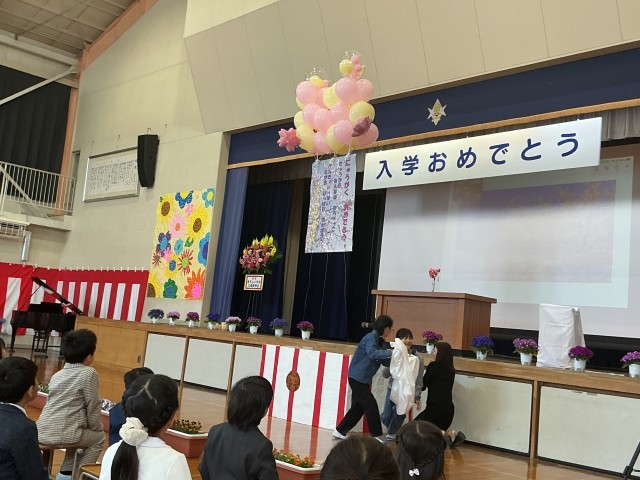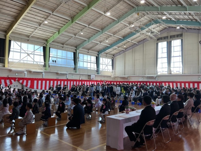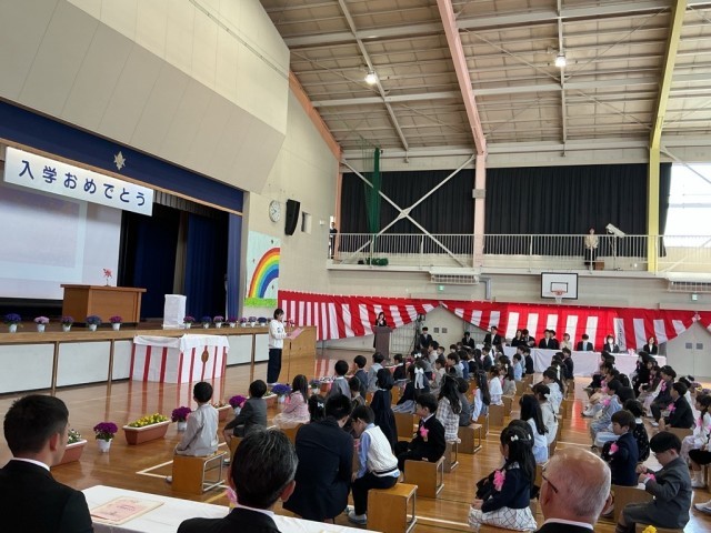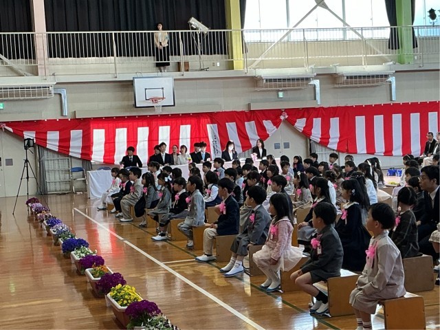 入学式では1年生が元気よく入場し、立派な返事が体育館に響きました。校長からは「挨拶のできる童子山の子」についての話がありました。1年生は6年生代表の「あいうえおのカギ」についての話を、最後まで静かに聞くことができました。進級認定では、各学年が成長した頼もしい返事で認定を受けました。