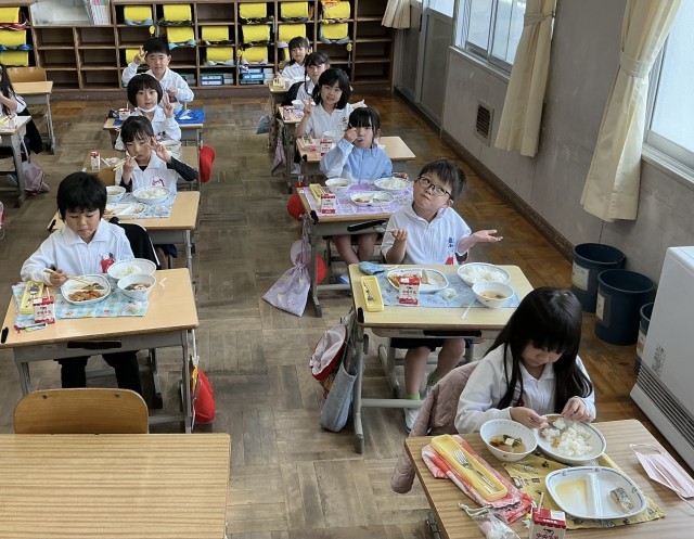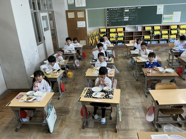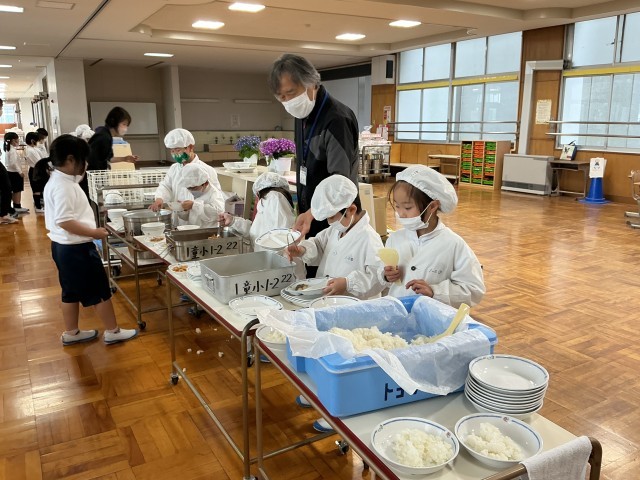 月曜日から始まった給食当番活動ですが、3日目の今日はすっかり慣れて手際よく進めることができるようになりました。給食を食べられる量に減らしたり増やしたりして、おいしくていただきました。