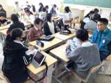5年生が外国語の授業でレストランでの会話の練習をしていました。 お店屋さんとお客...