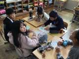 1年生が、童の森に遊びに来た園児と交流しました。1年生は、どんぐりを使って作った...