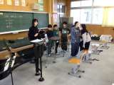 5年生は音楽の授業で、打楽器の音色や音楽の仕組みを生かして、リズムアンサンブルを...