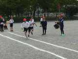 5月に体力テストがあるので、6年生が運動場で50M走の練習をしていました。「5年...
