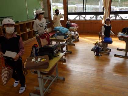 子どもたち、久しぶりの登校です。新入児童を迎えるための準備です。