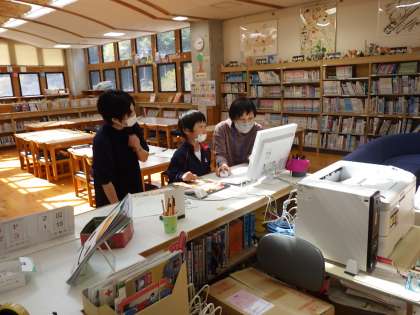 1年生国語。本校の図書館司書が1年生に本の借り方をレクチャーしました。たくさん本を読んでくださいね。