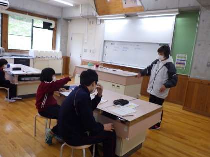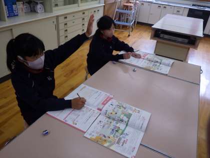 5・6年家庭科。手を挙げて進んで学んでいます。