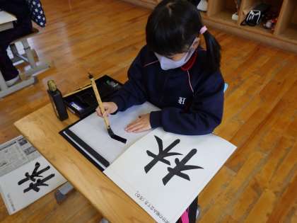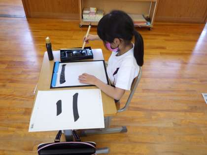 3・4年生書写。筆は立てること。とめをしっかりすることなど基本を学びます。