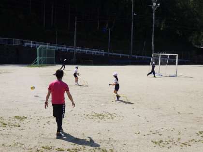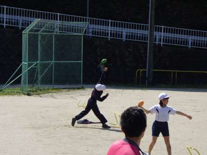 3・4年生体育。一昨年度の体力テストの結果を踏まえ、投げる力をつけられるよう授業等で行っていきます。