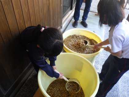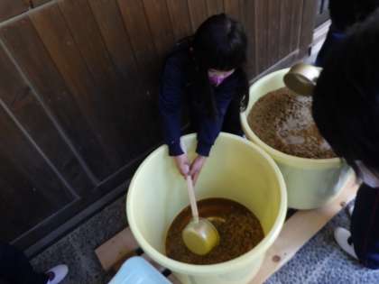 先週金曜日に仕込みましたしょうゆの天地返しです。ただ、器に移動するだけでなく、こつが必要です。