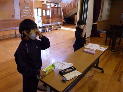 3・4年音楽。ハミングの歌い方を学んでいます。