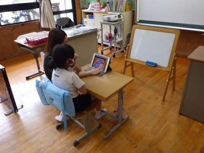パルクとよたより特別支援学級アドバイザーの先生がいらっしゃいました。お客様の前で張り切っています。