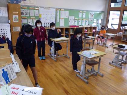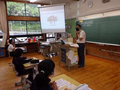 中、下:5・6年生外国語科。Siomn says ゲームです。