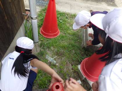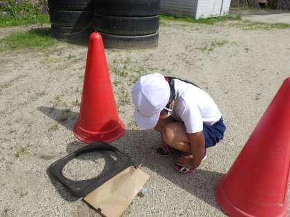 3・4年理科。温度を測りつつも、そばにいたダンゴムシに夢中になっていました。