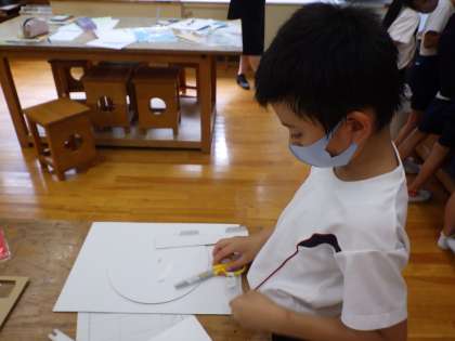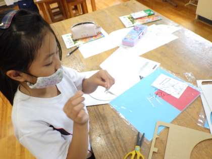 3・4年生図工。まだ作り始めですね。どんな作品か楽しみです。
