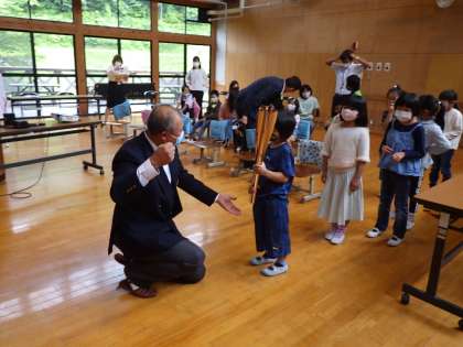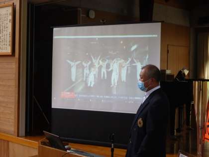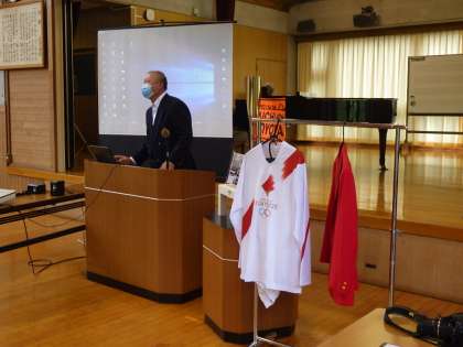 本日は本来なら授業公開日だったのですが、緊急事態宣言下のため、児童のみ登校とし、2つのイベントを行いました。まず、ソウルオリンピック代表の方がオリンピックや聖火ランナーの思い出を語っていただきました。