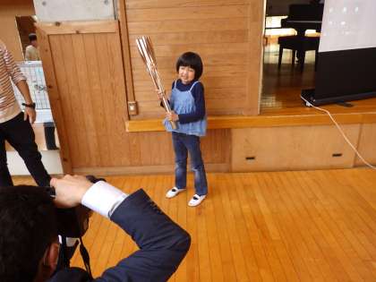 写真は本物のトーチを持ったり、ジャケットを着せてもらい撮影しています。