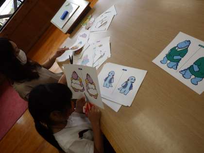 やまびこ学級。ペープサートを作成しています。