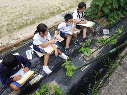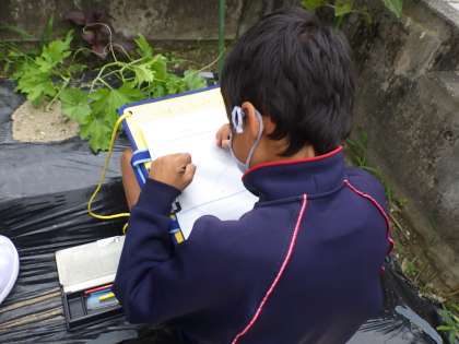 3・4年生理科。土が良いのかずいぶん成長が早いです。