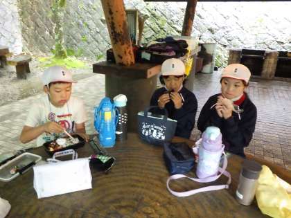 お弁当です。次の活動場所に移動しているときも雨でした。