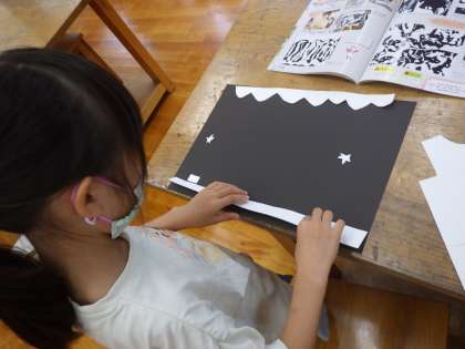 1・2年図工。白と黒だけで表現しています。