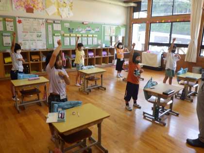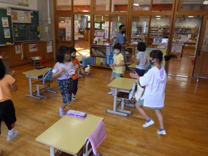 1・2年生学級活動。ALTといっしょに数字を覚えました。
