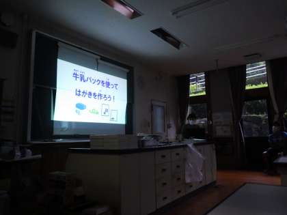 本来なら6月に読書講演会として紙漉き体験を行う予定でした。しかし、感染症拡大により中止となってしまいました。今回は、講演会にいらっしゃる予定でした先生からビデオが送られ、それを見ながら紙すきをしました。
