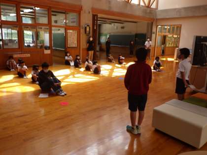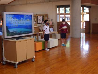 全校一斉に行うスピーチです。夏休みの思い出を語り合いました。