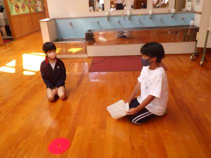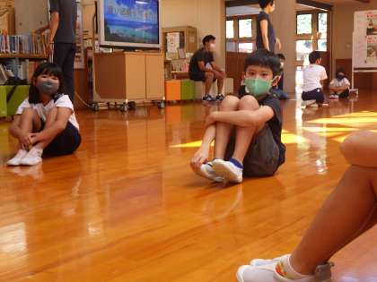 縦割り班ごとに分かれ、互いの話を聞き合ったり、質問し合ったりします。