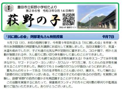 9月14日(火)学校だより「萩野の子」286号