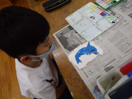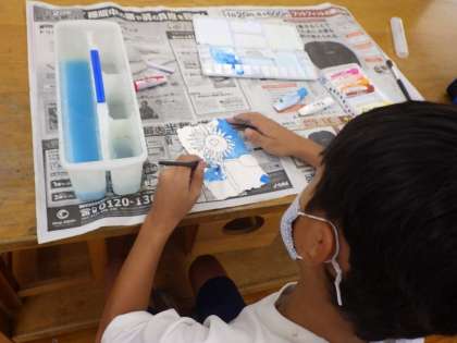 3・4年生。昨日同様、リサイクル用紙で手紙を書いています。