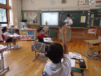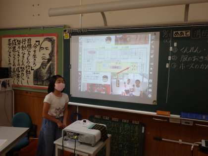 3・4年生社会。発表者は聞き手を意識ながら説明をしています。