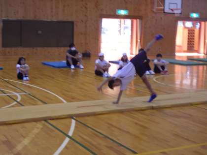最後は担任が披露しました。なんとバック転ができます。さすが!