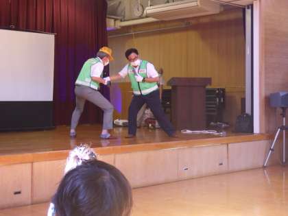豊田市役所交通安全防犯課の方々が来てくださり、いわゆる「連れ去り」の対処法について教わりました。