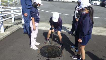 放水体験までさせていただき、子どもたち楽しそうです。